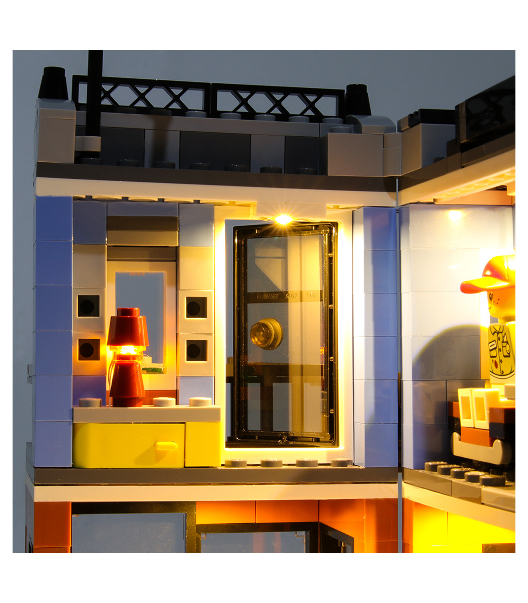 Rüsten Sie Ihr Creator Corner Deli mit einem Beleuchtungsset auf, um Ihrer Sammlung ein völlig neues Maß an Dynamik und Realismus zu verleihen und mehr Fähigkeiten zum Bauen herauszufordern. Dieses benutzerdefinierte DIY-Beleuchtungsset wurde speziell für das Creator Corner Deli-Baukasten 31050 entwickelt und verleiht diesem Modell schillernde und charmante Lichter. Nach der Installation verwandelt der Beleuchtungseffekt Ihr Set in etwas, das es wirklich wert ist, angezeigt zu werden.