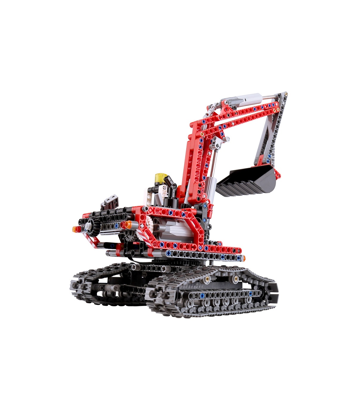 Funktioniert genau wie der echte Merchine! Sogar der Custom TECHNIC Bagger steckt voller realistischer Details und Funktionszwecke, wie z. B. mechanischer Aktuatoren, die Ihren Gelenkarm absenken und anheben, sowie eines ausziehbaren und hämmernden Schaufelspatens, eines um 360 Grad drehbaren Kabinensegments und aufrollbarer Raupenmonitore! Laden Sie die Bauanleitung herunter, um einen Raupenkipper zu rekonstruieren! Drehen Sie die Ausrüstung, um den Ausleger anzuheben und abzusenken, und drehen Sie dann den Knopf, um die Pfanne zu bewegen! Das rotierende Taxi endet in alle Richtungen! Eigenschaften! Baggerstufen 19 cm lang und 30 cm hoch! Fügen Sie Solarstrom mit Power Functions Motor Set ein!