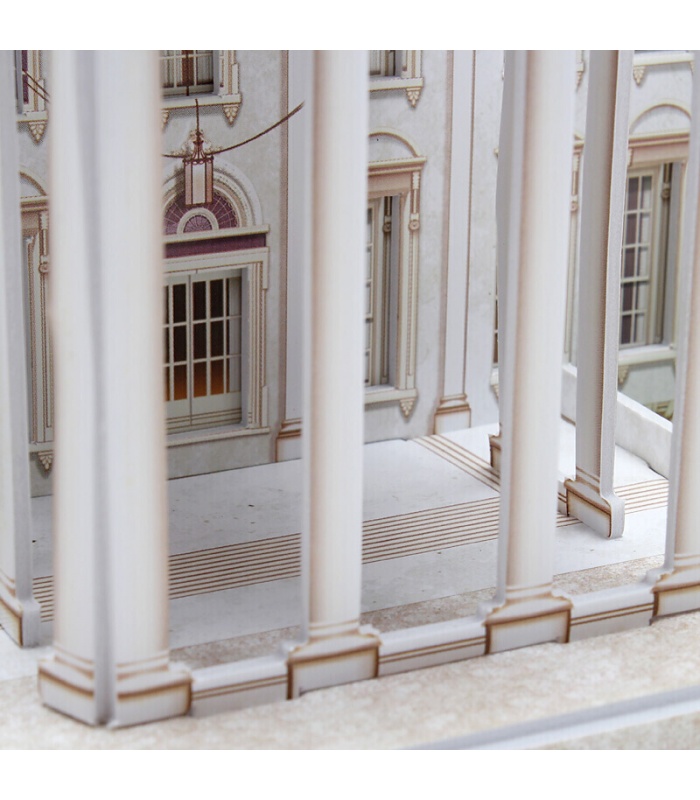 • Dieses Architekturmodell des amerikanischen Weißen Hauses verwendet hochauflösende Drucktechnologie mit echten und zarten Farben. Mit einfacher Handarbeit können Sie leicht weltberühmte historische Oberflächengebäude zusammenbauen, die amerikanische Kultursymbole darstellen. Während des Montageprozesses können Sie die hohlen Details verschiedener Vorhangdetails in verschiedenen Räumen des Weißen Hauses sorgfältig beobachten.