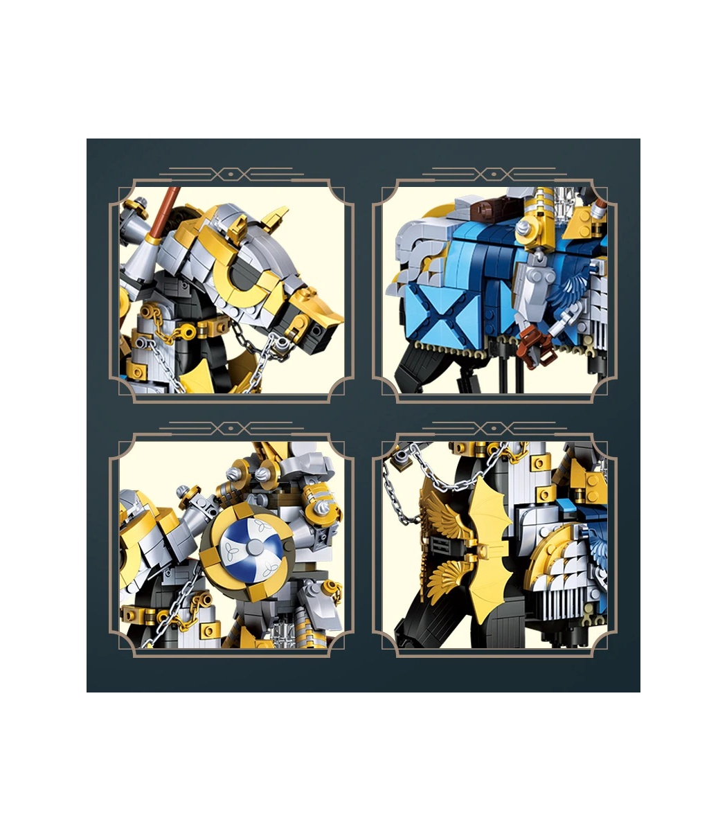Das mittelalterliche Rittermodell JIE STAR JJ9050 ist eine bemerkenswerte Kreation, die speziell für Geschichtsliebhaber und Modellsammler entworfen wurde. Dieses Modell ist eine Hommage an den mittelalterlichen europäischen Ritter und seine exquisite Handwerkskunst vermittelt Ihnen das Gefühl, in der Zeit zurückgereist zu sein, um den Mut und den Ruhm dieser bemerkenswerten Ära mitzuerleben. Jedes Rüstungsteil und jedes dekorative Detail wurde sorgfältig gefertigt und poliert, um das heroische Bild des mittelalterlichen Ritters genau darzustellen. Vom imposanten Helm bis zu den komplizierten Mustern auf dem Schild und von der Textur der Rüstung bis zur edlen Haltung des Schlachtrosses zeigt jedes Element den Ruhm und die Macht des Ritters und weckt Bewunderung.