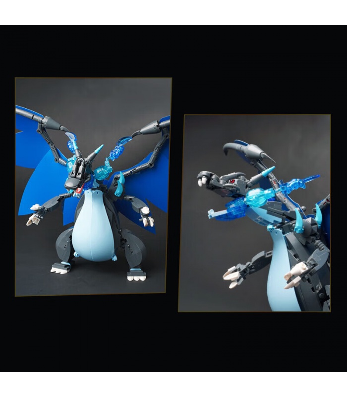 Der Glurak ist Baokemeng mit dem Feuerattribut, während der Super-Glurak X die weiterentwickelte Form des Gluraks ist und der Super-Glurak X zum Feuerattribut und zum Drachenattribut wird. Die Gliedmaßen des Modells ähneln denen des Prototyps, aber seine Haupthautfarbe hat sich in Grauschwarz geändert, und die Farbe seines Kinns bis zur Schwanzspitze hat sich in Himmelblau geändert. Das aus diesem Baustein erstellte Modell stellt durch abgerundete Module und realistische Farbabstimmung den aggressiven Super Charizard X in der Animation wieder her. Der ernste Ausdruck und die lebensechten Flügel des Modells lassen Sie die Kraft und Arroganz des Super Charizard X spüren. Das Modell ist außerdem mit einer verstellbaren Basis ausgestattet, um das Modell unverwechselbarer zu machen.