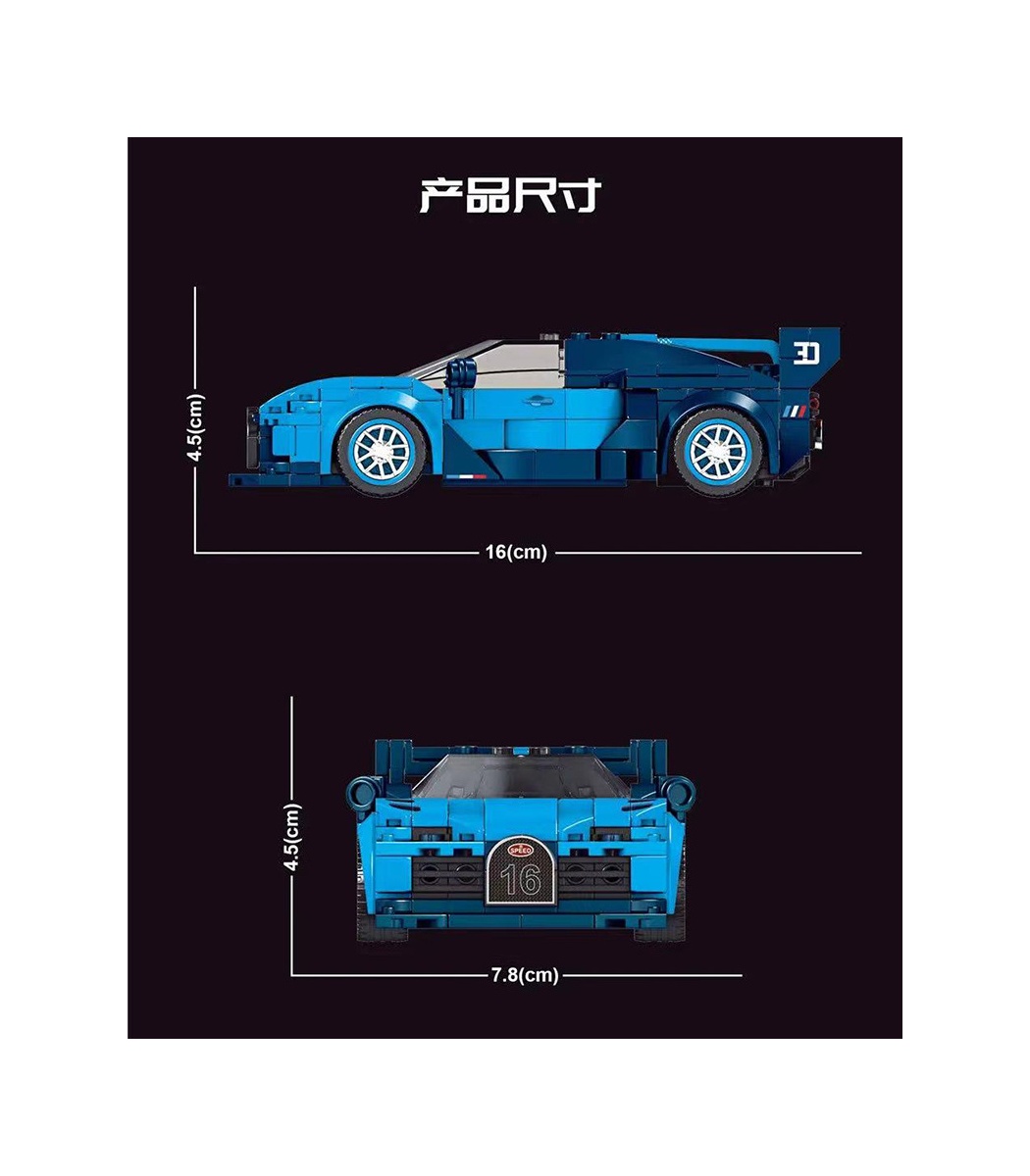 • MOLD KING 27001 Technology Series Mechanischer Bugatti-Sportwagen Produktgröße ist ca. 7,8 cm breit, 4,5 cm hoch und 16 cm lang