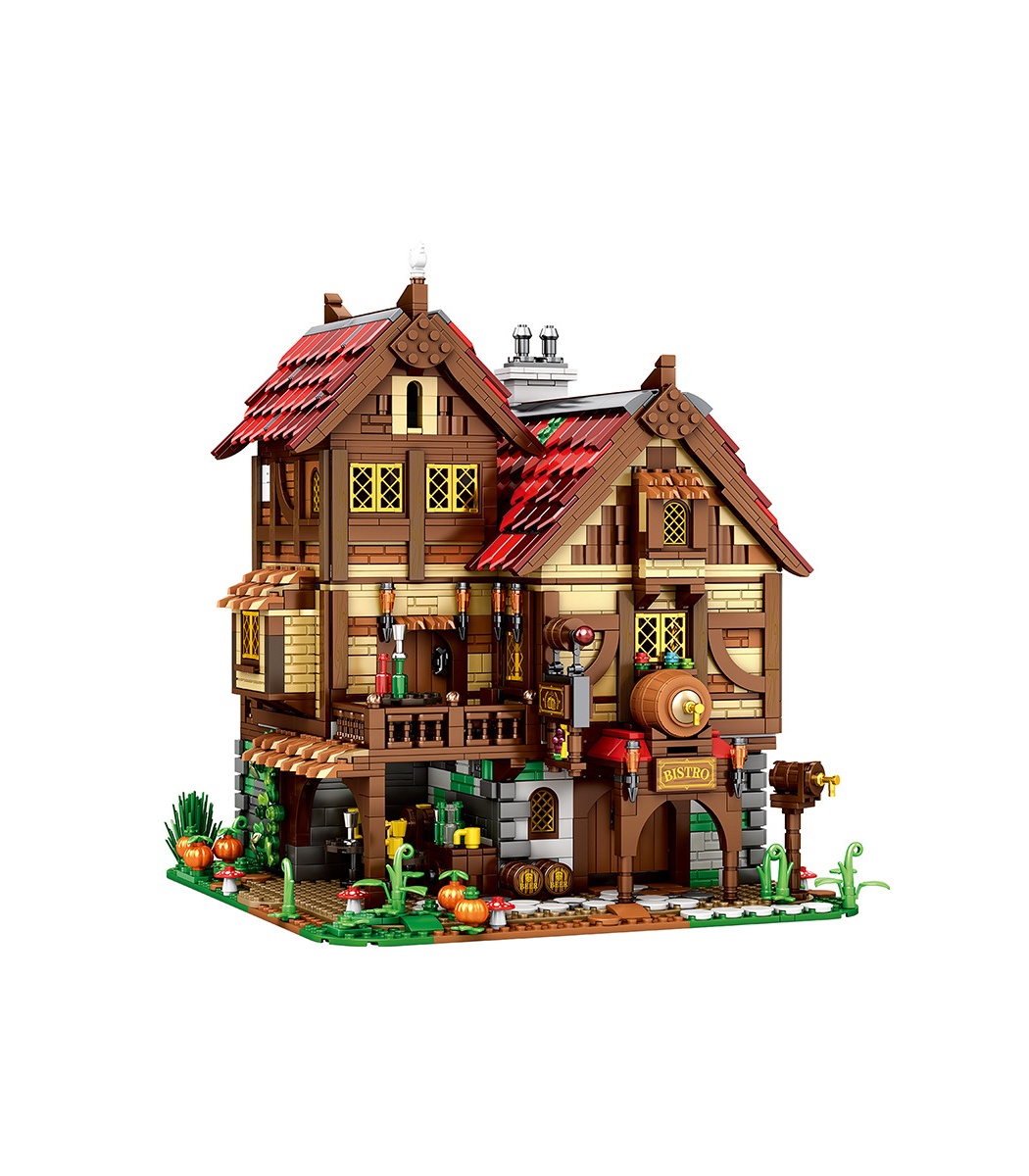 Begeben Sie sich auf eine Reise durch Zeit und Raum, um den einzigartigen Stil des Mittelalters zu erleben. Dieses Reobrix 66018 European Medieval Tavern Building Block Set bietet Ihnen unvergleichlichen Zusammenbauspaß und historischen Charme. Egal, ob Sie ein Geschichtsfan oder ein Fan des Bauens mit Bausteinen sind, dieses hochwertige Bausteinset wird zu einem Schatz in Ihrer Sammlung. Die feinen Details und das exquisite Design lassen dieses Tavernen-Bausteinset Sie in diese mysteriöse und romantische Ära zurückversetzen. Jeder Baustein ist sorgfältig poliert und das zusammengesetzte Tavernengebäude reproduziert perfekt den Kleinstadtstil des mittelalterlichen Europas, der lebensecht ist. Die klassische braune Holzkonstruktion, die roten Dachziegel und das Design mit einem kleinen Innenhof zeigen den einzigartigen Charme und den historischen Stil der mittelalterlichen Architektur.