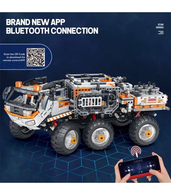 • Das zusammengebaute Transportfahrzeug-Modellset ist mit entsprechendem Elektrozubehör ausgestattet und die Lenkung der Räder kann über die Mini-Fernbedienung oder die Mobiltelefon-APP gesteuert werden