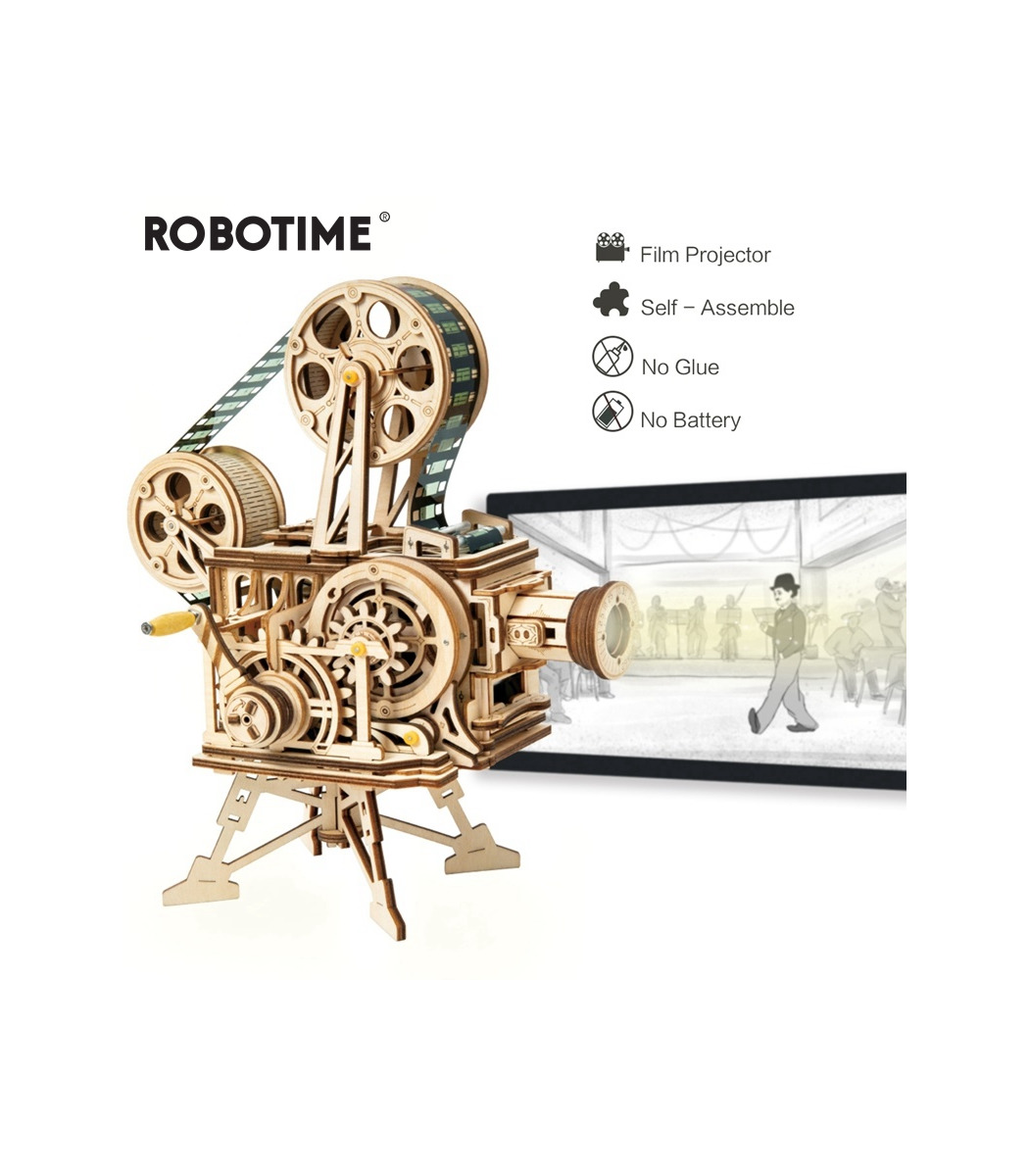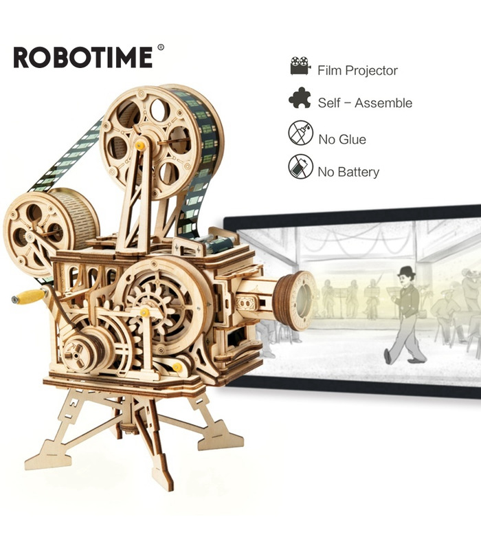 Das ROKR Vitascope ist ein batterieloses 3D-Holzmodell eines kleinen Filmprojektors. Drehen Sie die Kurbel, um zu sehen, wie der Motor und der Handkurbelgenerator funktionieren. Es werden keine Klebstoffe oder Chemikalien benötigt.