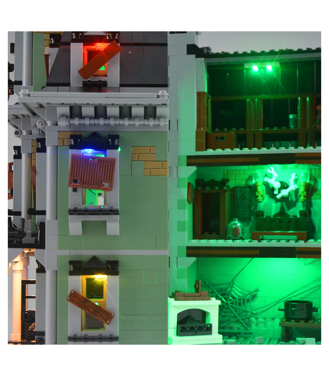 Neon green LED lights illuminate every window of the three-story haunted house! Upgrade your Monster Fighters Haunted House with a lighting kit to add a completely new level of dynamics and realism to your collection and challenge more building skills. This DIY custom lighting kit is specially designed for Monster Fighters Haunted House building set 10228, adding dazzling and charming lights to this model. After installation, the lightings effect will transform your set into something truly worth displaying.