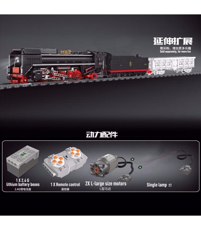 MOULD KING World Railway Series. The QJ steam locomotive is China's first self-designed mainline freight locomotive. It was successfully trial-produced by the Dalian plant in China, and all technical indicators have reached the advanced level of steam locomotives, which is the pinnacle of steam locomotives in China. A total of 4708 vehicles of this model were produced. In 2006, Jitong Railway Company sold 5 locomotives to the American Railroad Development Corporation for the Iowa Interstate Railroad.