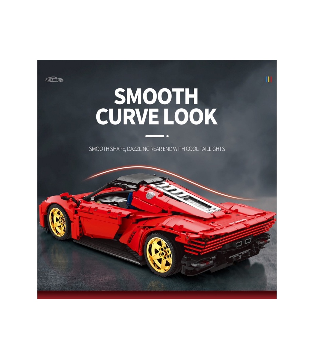 This luxury sports car draws on the design concept of Ferrari's classic racing car 330 P3/4 and is popular with many sports car enthusiasts. This Ferrari sports car model made of building blocks reproduces the appearance of a real luxury sports car through smooth body lines and classic butterfly wing door design. The model not only has beautiful interior, but also has rich details of its body. For example, the doors and front hood of this model can be opened and closed flexibly, so that you can view the interior of the body and the built-in engine more carefully.