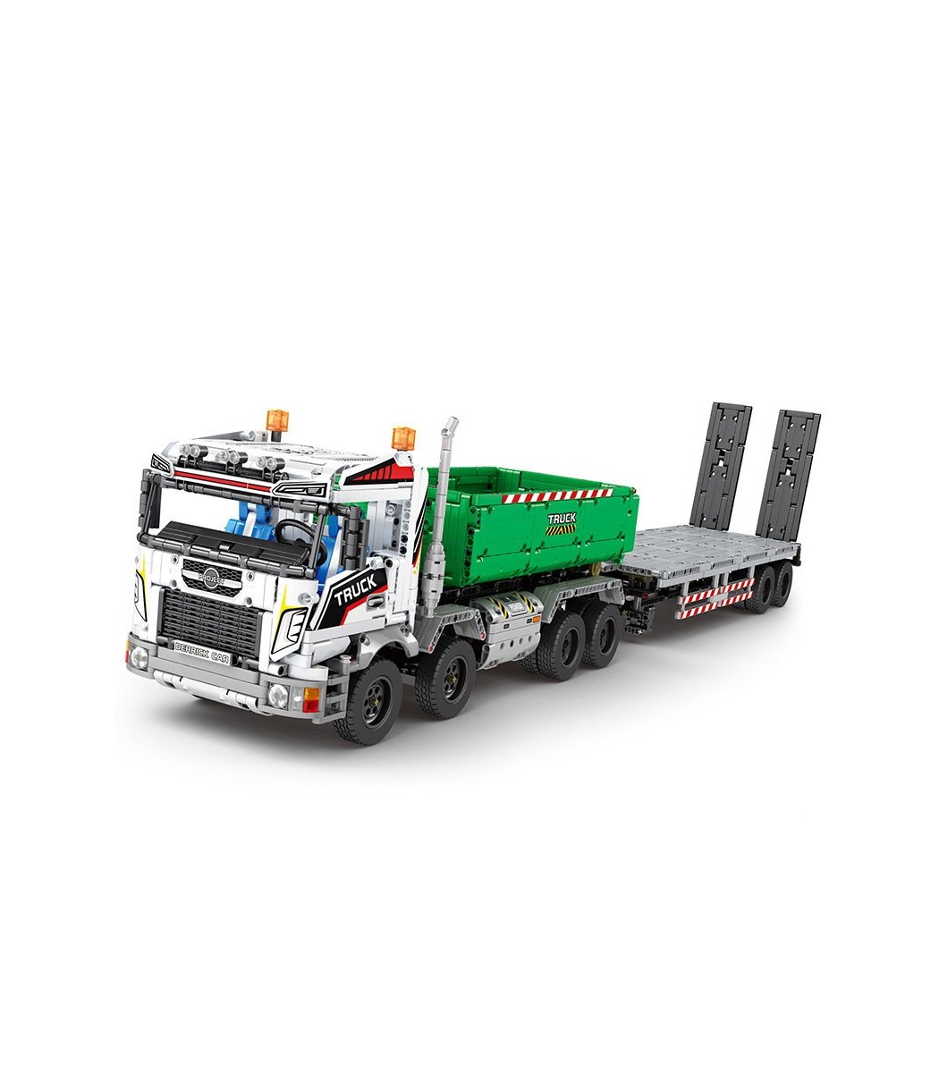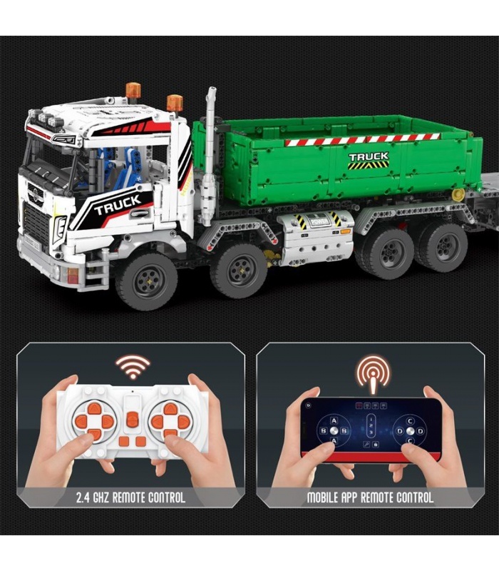 This hook crane model has a delicate appearance and clean body lines, and can control the forward and backward of the vehicle through mobile APP or micro remote control to copy the working scene of the real vehicle. The model has multiple functions. Its hooks can control the lifting and backward tipping of the rear compartment. The doors on both sides can also be opened and closed. Different parts of the model can also be assembled independently, making the model more playable.