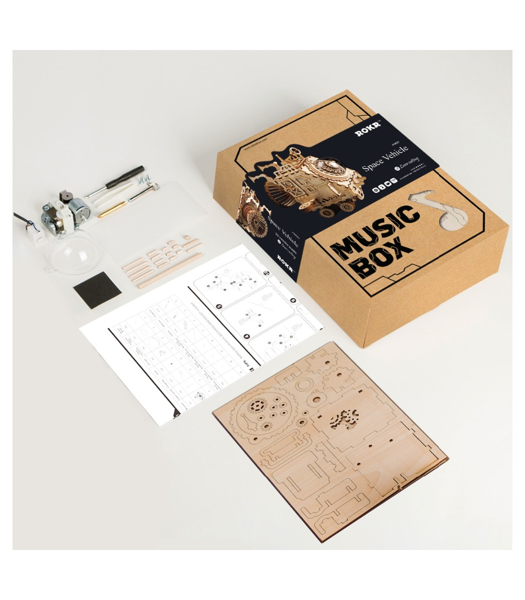 Start the journey of planet exploration spacecraft and give him a unique surprise experience. This wooden music box made of natural environmentally friendly materials has a smooth surface and a good feel. The unique 3D puzzle music box named "Spaceship" has a retro-style appearance, accompanied by excellent steampunk design and perfect laser cutting technology. Wind up the movement, the beautiful melody of "Fly Me To The Moon" is very suitable to create a good atmosphere at parties or relaxing.