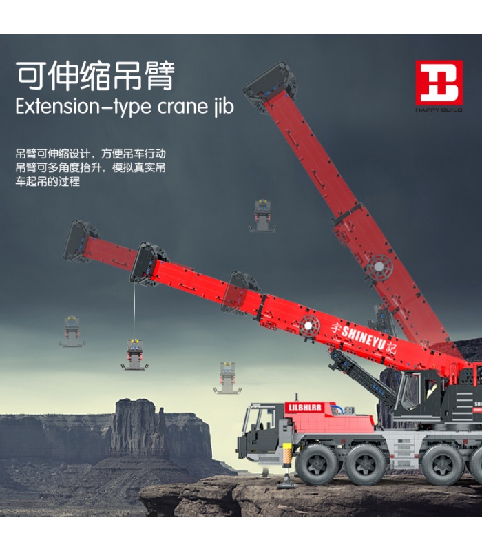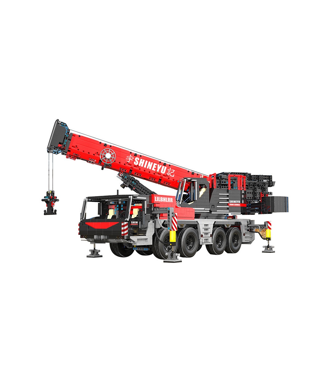 This urban engineering series large lifting truck building block is a fully-structured building block construction machinery vehicle, which restores a wealth of functions and details, showing the original style from the inside to the outside.