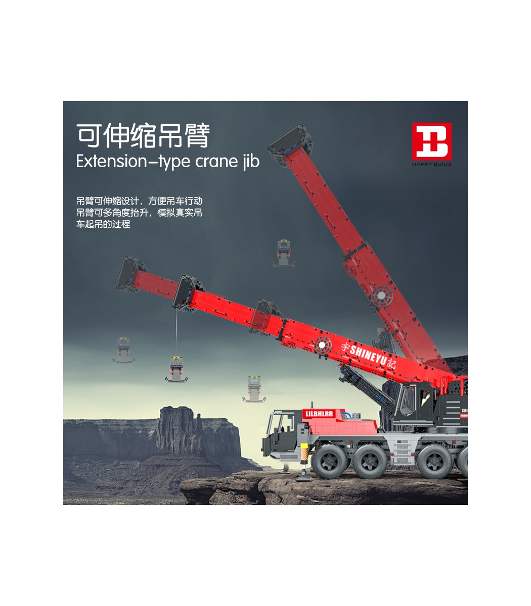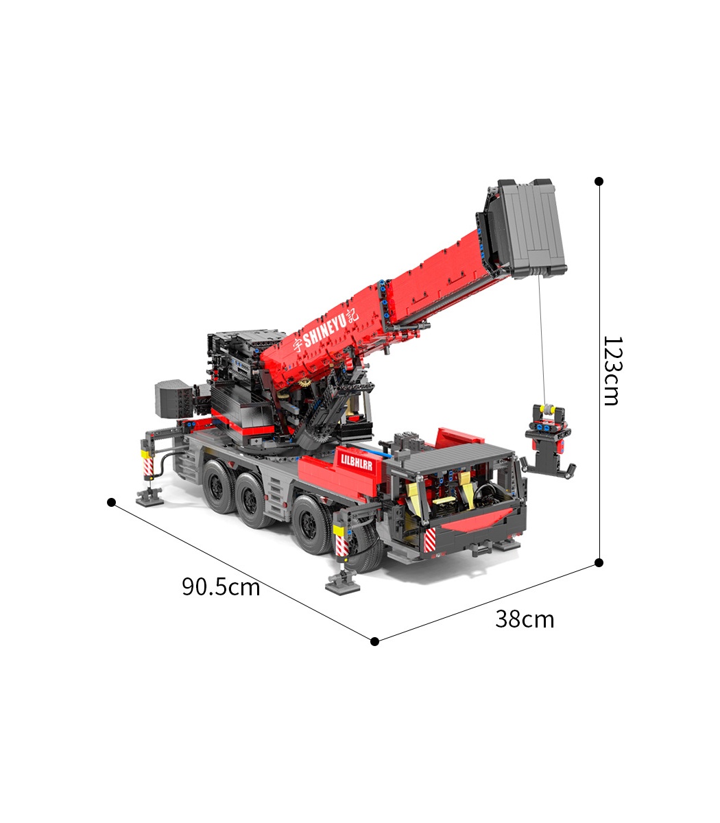 • The building blocks of this large crane truck are equipped with electric hybrid support frames and all-terrain tires;