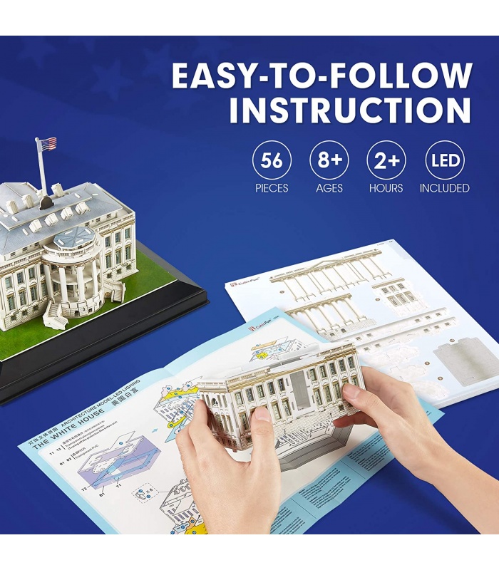 Este modelo en 3D de la American Casa Blanca está además equipado con LED de luz cálida accesorios en el estilo original. El propósito es la inyección de uno de los hitos más importantes en los Estados unidos en el modelo 3D, de modo que usted puede disfrutar de la vista de noche de la Casa Blanca en cualquier momento, y la esperanza de llevar una inmersiva y experiencia perfecta a través de puzzles.
