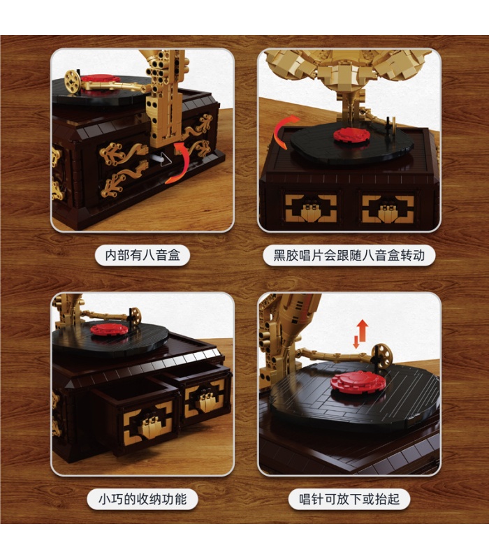 Juego de bloques de construcción de fonógrafo con caja de música QIZHILE 91002