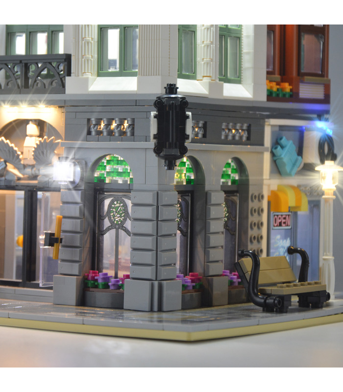 Este DIY kit de iluminación está especialmente diseñado para el Ladrillo, el edificio del Banco de conjunto de 10251 a traer un mágico resplandor de esta calle de la vista de modelo. Cuando las luces LED están instalados, toda de Ladrillo Banco estará abierto toda la noche! Fuera, los arcos de el clásico edificio del banco se iluminará, el "abrir" signo de la lavandería junto a la puerta de brillo, y todo el interior del banco y la lavadora se llena de luz.