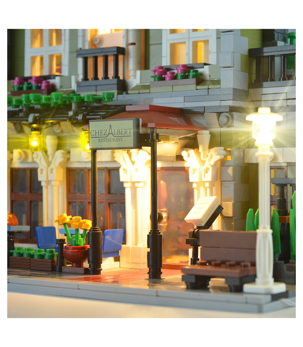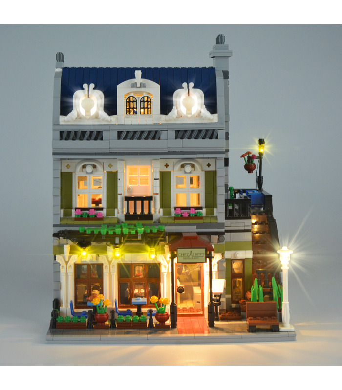 La experiencia de una cena romántica en un restaurante Parisino. Actualización de su Restaurante Parisino con un kit de iluminación para agregar un nivel completamente nuevo de la dinámica y el realismo a su colección y el desafío más habilidades de construcción. Este DIY personalizado de iluminación kit está especialmente diseñado para Restaurante Parisino edificio de 10243, añadiendo deslumbrante y encantadora luces para este modelo. Después de la instalación, los equipos de luces efecto va a transformar su conjunto en algo que verdaderamente vale la pena mostrar. Amarillo Led de luz de las linternas en la planta baja, restaurante y terraza en la azotea, transparente LEDs iluminan el restaurante y el interior del apartamento del segundo piso y el ático taller de artista! También se incluye un blanco poste de luz para iluminar la acera y terraza!