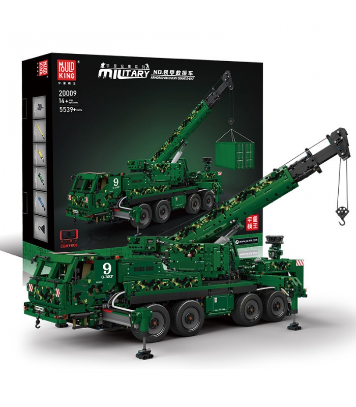 MOLD KING 20009 grúa de recuperación blindada G-BKF serie militar juego de bloques de construcción de Control remoto