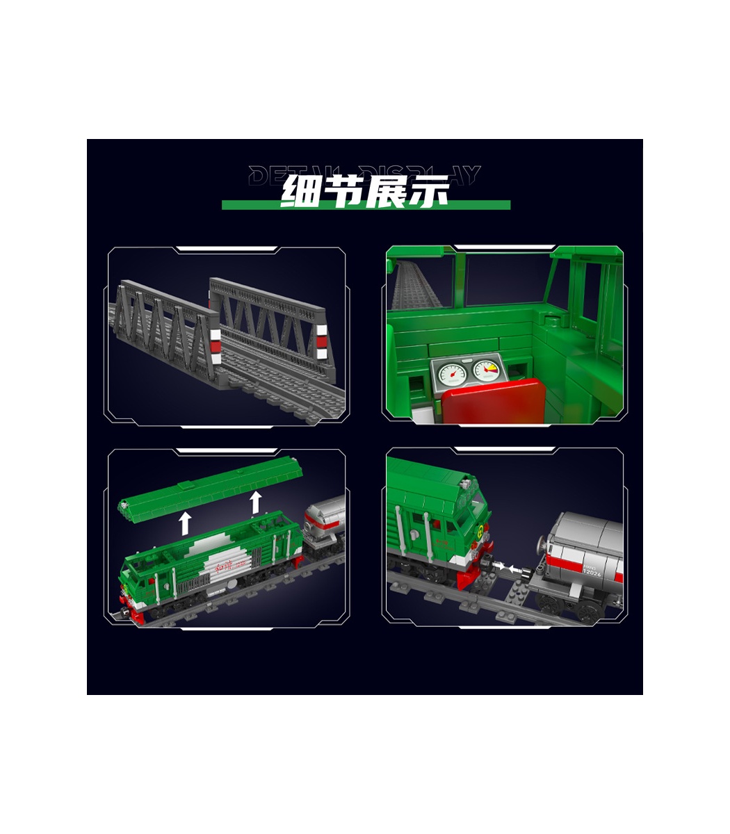 La locomotora diésel HXN3 es cofabricada por China North Vehicle GroupDalian Locomotive & Rolling Stock Co., Ltd. (DLoco) y Electro-Motive Diesel, inc. (EMD), con sede en Estados Unidos. Este modelo de tren hecho de bloques de construcción tiene una apariencia exquisita, está equipado con accesorios icónicos de vías de tren y unos interiores ricos, meticulosos y exquisitos. La apariencia del tren es muy hermosa y varios accesorios, incluido un módulo de alimentación RWY y un control remoto, lo hacen más realista. La estructura superior de la locomotora del modelo también se puede desmontar para hacer el modelo más atractivo. Al ensamblar este tren, podrá comprender mejor las características estructurales de la Locomotora Diésel HXN 3.