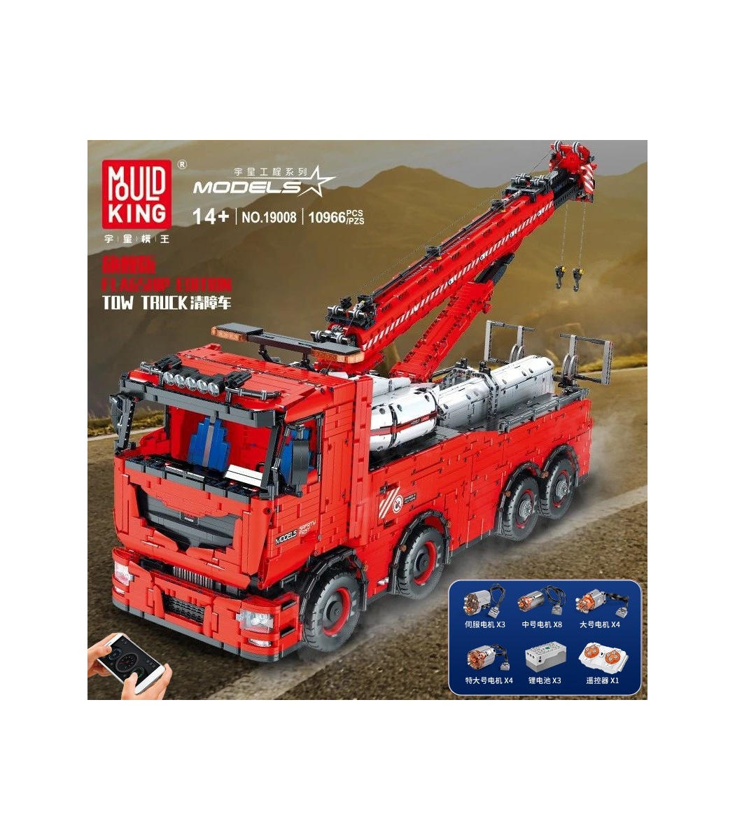MOULD KING 19008 Grúa motorizada Camión de auxilio Control remoto Bloques de construcción Juego de juguetes