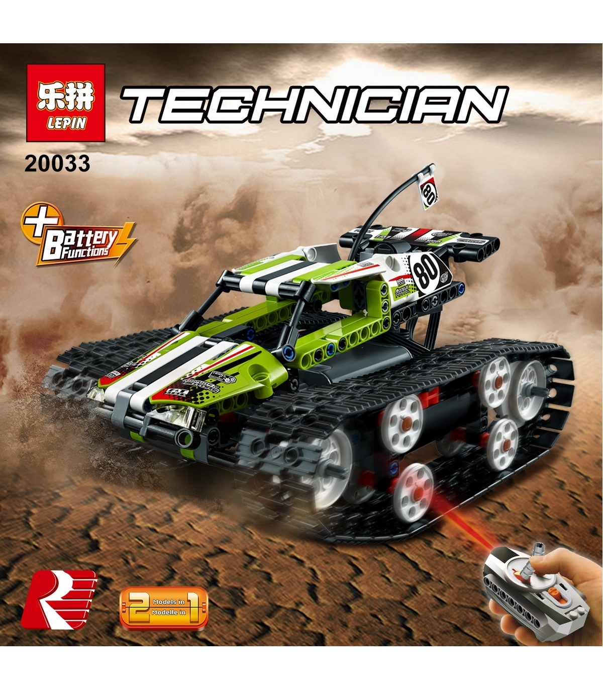 • Incluye la posterior LEPIN de Alimentación de las Funciones de los elementos: 2 moderado motores, 1 recibidor, 1 caja de la batería y un controlador remoto.