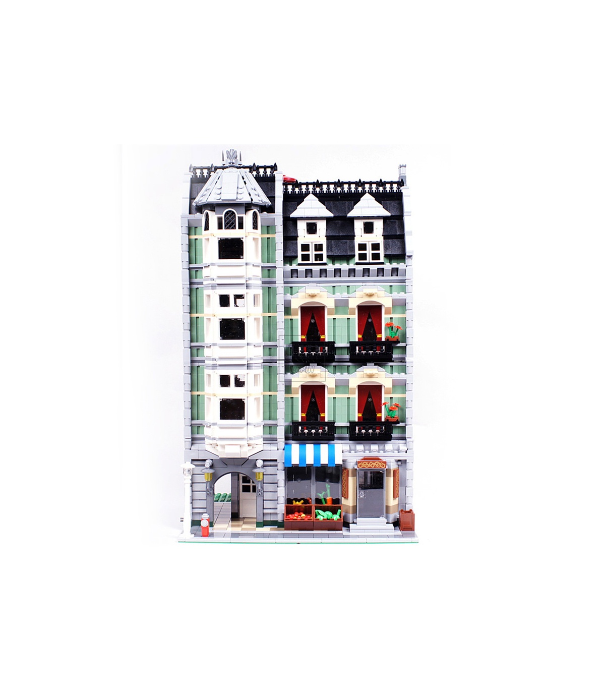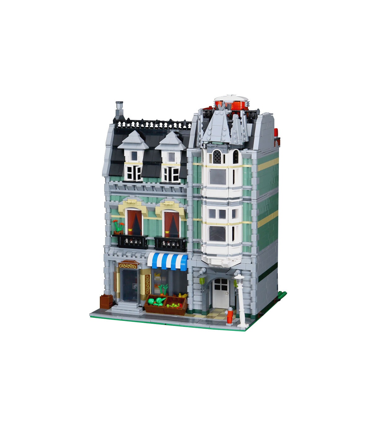 Expanda su Costumbre el área de la calle o comenzar uno nuevo con el Verde de la tienda de Comestibles! Producido en un diseño modular, este animado y colorido edificio viene con una tienda de comestibles y atemporal de los pisos, que puede ser construido, reconstruido y reorganizado para dar cabida a su edificio de juguete de la ciudad. Detalle de la arquitectura se compone de los realistas en el interior, patio de entrada, un techo para el patio y escapar del fuego, toneladas de puertas y ventanas, además de un montón más!
