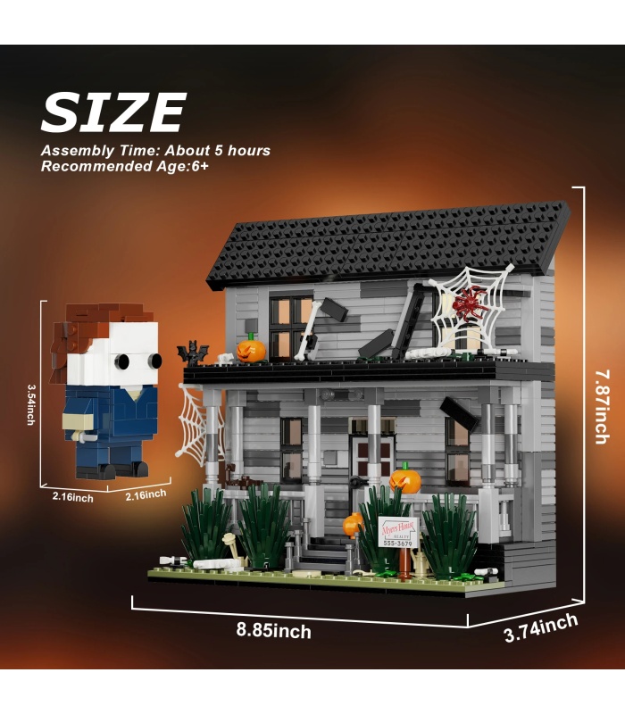 • La maison personnalisée de Michael Myers mesure environ 7,87 pouces de haut, 8,85 pouces de long et 3,74 pouces de large