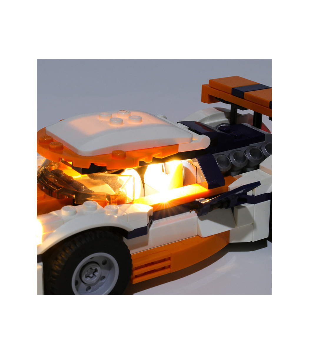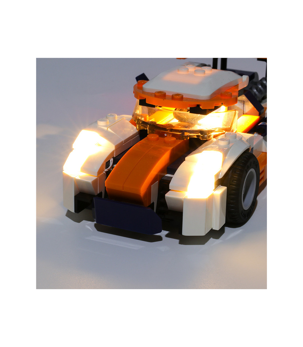 Mise à niveau de votre Coucher de soleil Track Racer avec un kit d'éclairage pour ajouter un tout nouveau niveau de dynamisme et de réalisme à votre collection et un défi de plus le renforcement des compétences. Ce BRICOLAGE personnalisé kit d'éclairage est spécialement conçu pour le Coucher du soleil Track Racer jeu de construction 31089, ajoutant éblouissante et charmant lumières de ce modèle. Après l'installation, les éclairages effet de transformer votre jeu en quelque chose de vraiment la peine de l'affichage.