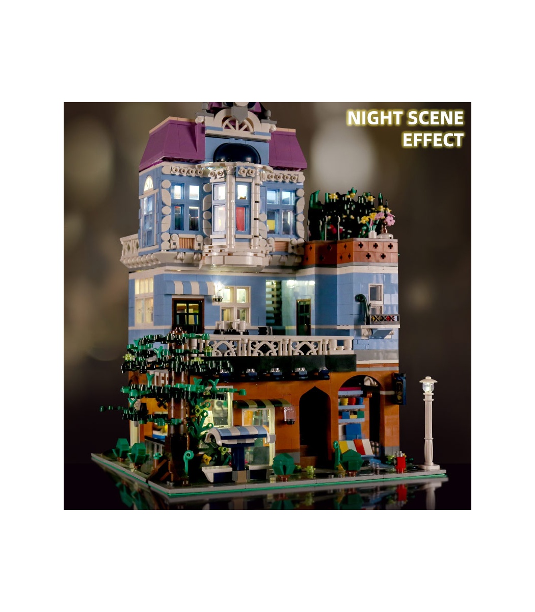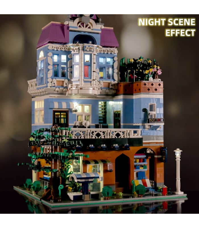 MOLD KING 16004 Cette série de cafés de scène de rue restitue les scènes de rue des villes européennes avec un haut degré de simulation. Le dispositif LED dans l'emballage peut simuler une veilleuse d'intérieur.