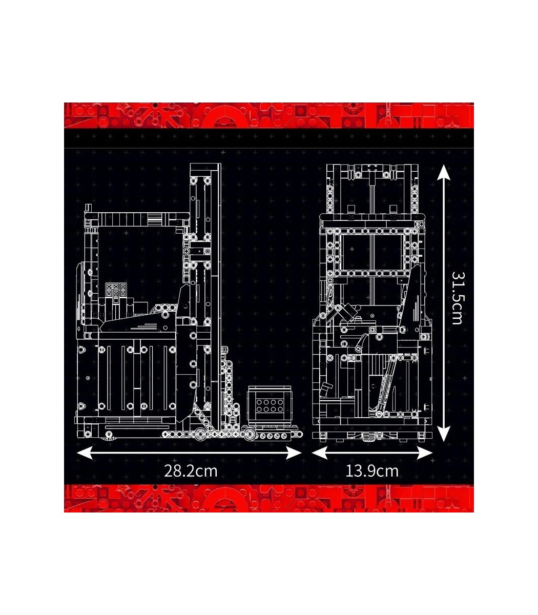 • Le chariot élévateur à fourche MOLD KING 17041 Engineering Series mesure environ 31,5 cm de hauteur, 28,2 cm de longueur et 13,9 cm de largeur.