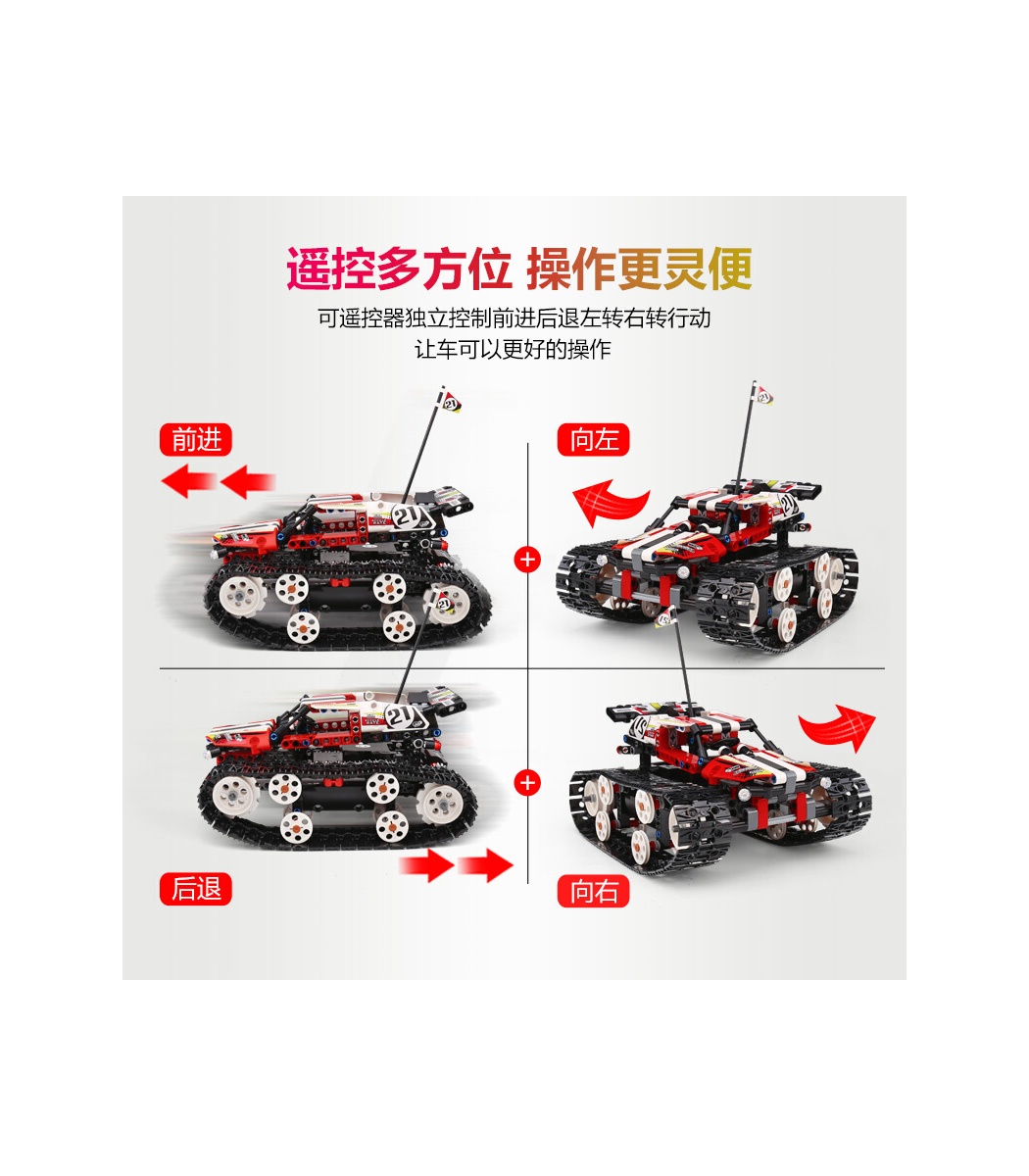 Cette version télécommandée de l'ensemble de blocs de construction de la série de courses à grande vitesse sur chenilles MOLD KING est un excellent cadeau pour les amateurs de modèles de courses sur piste à grande vitesse. Cette voiture de course sur chenilles peut être contrôlée par Bluetooth de téléphone portable ou par application de téléphone mobile, et la conversion à plusieurs vitesses vous permet de découvrir différents modes de contrôle.