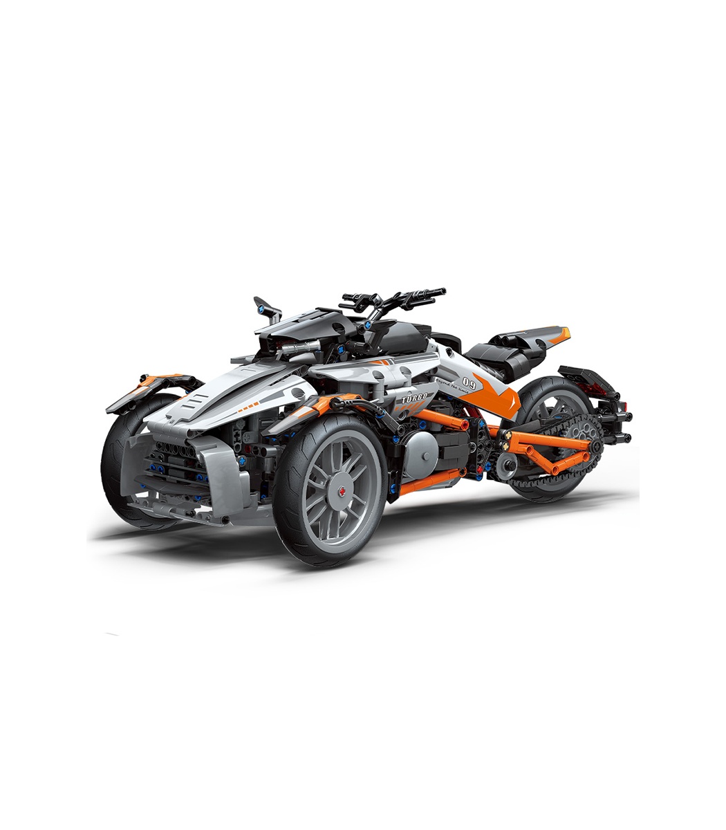 Ce tricycle à moteur inversé (deux roues à l'avant) est conçu avec un sens de la technologie et peut défier divers obstacles au sol. Il a fière allure et est très amusant à conduire. Équipé d'un kit de télécommande électrique, ce tricycle en briques à construire restaure les différentes mécaniques et le style de conduite du véhicule.
