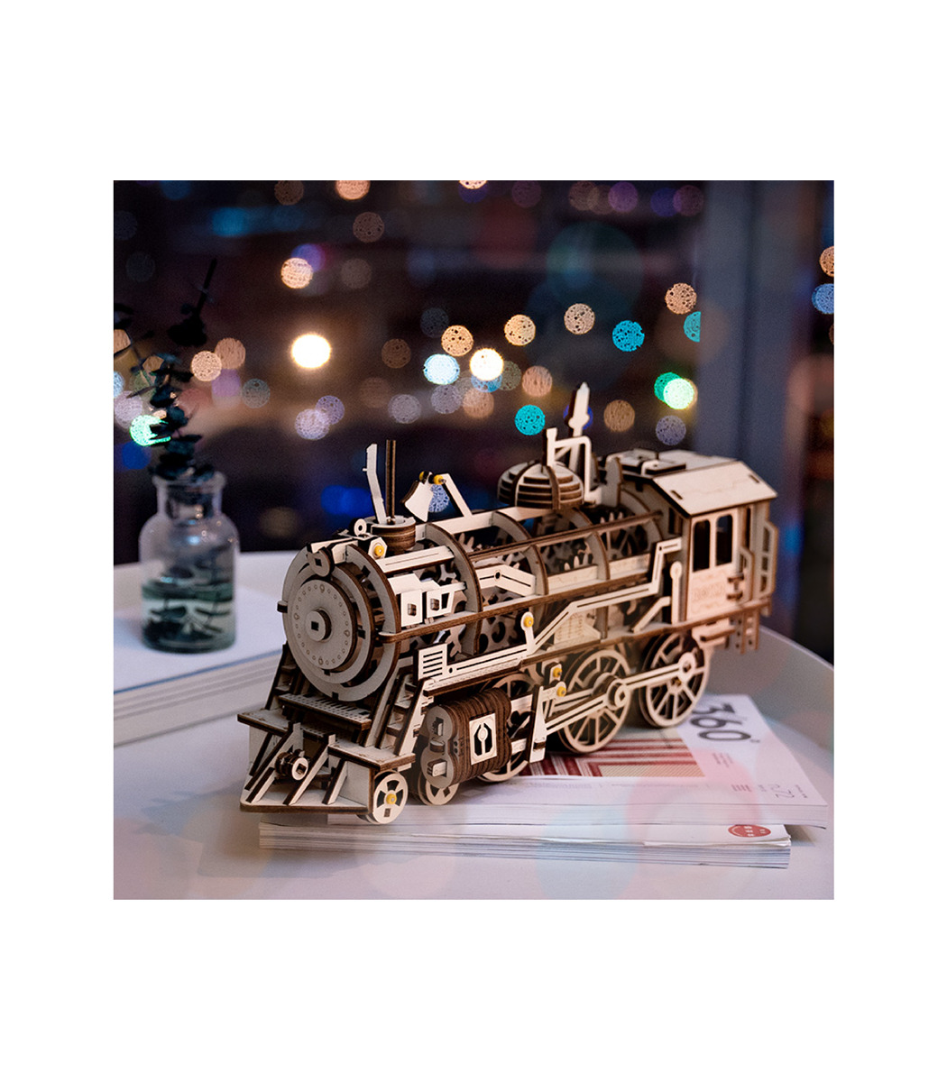 ROKR 3D Puzzle Clockwork Gear Drive Locomotive Wooden Building Toy Kit