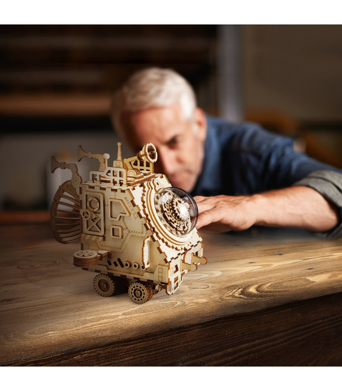 Commencez le voyage d'exploration de planètes vaisseau spatial et lui donner un unique surprise de l'expérience. Ce bois boîte à musique faites de naturelle matériaux respectueux de l'environnement dispose d'une surface lisse et une bonne sensation. Le puzzle 3D unique boîte à musique nommé "Vaisseau spatial" a un rétro de style apparence, accompagnés par d'excellents steampunk de la conception et de la parfaite coupe de laser de la technologie. La liquidation de la circulation, la très belle mélodie de "Fly Me to The Moon" est très approprié pour créer une bonne ambiance lors de soirées ou de détente.