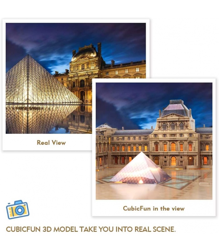 Cubicfun 3D Puzzle The Louvre L517h With LED Lights Model Building Kits