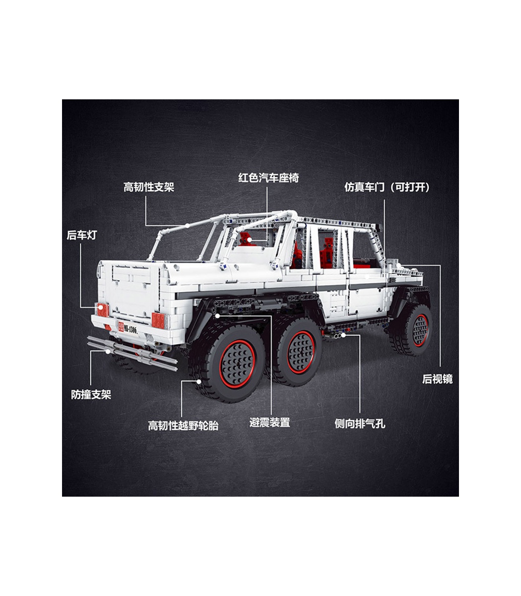 MOLD KING G700オフロード車両ビルディングブロックセットのこのリモートコントロールバージョンは、技術車両モデルのファンへの優れた贈り物です。このオフロード車モデルは、携帯電話のBluetoothまたは携帯電話のAPPを介して制御でき、マルチスピード変換により、さまざまな制御モードを体験できます。