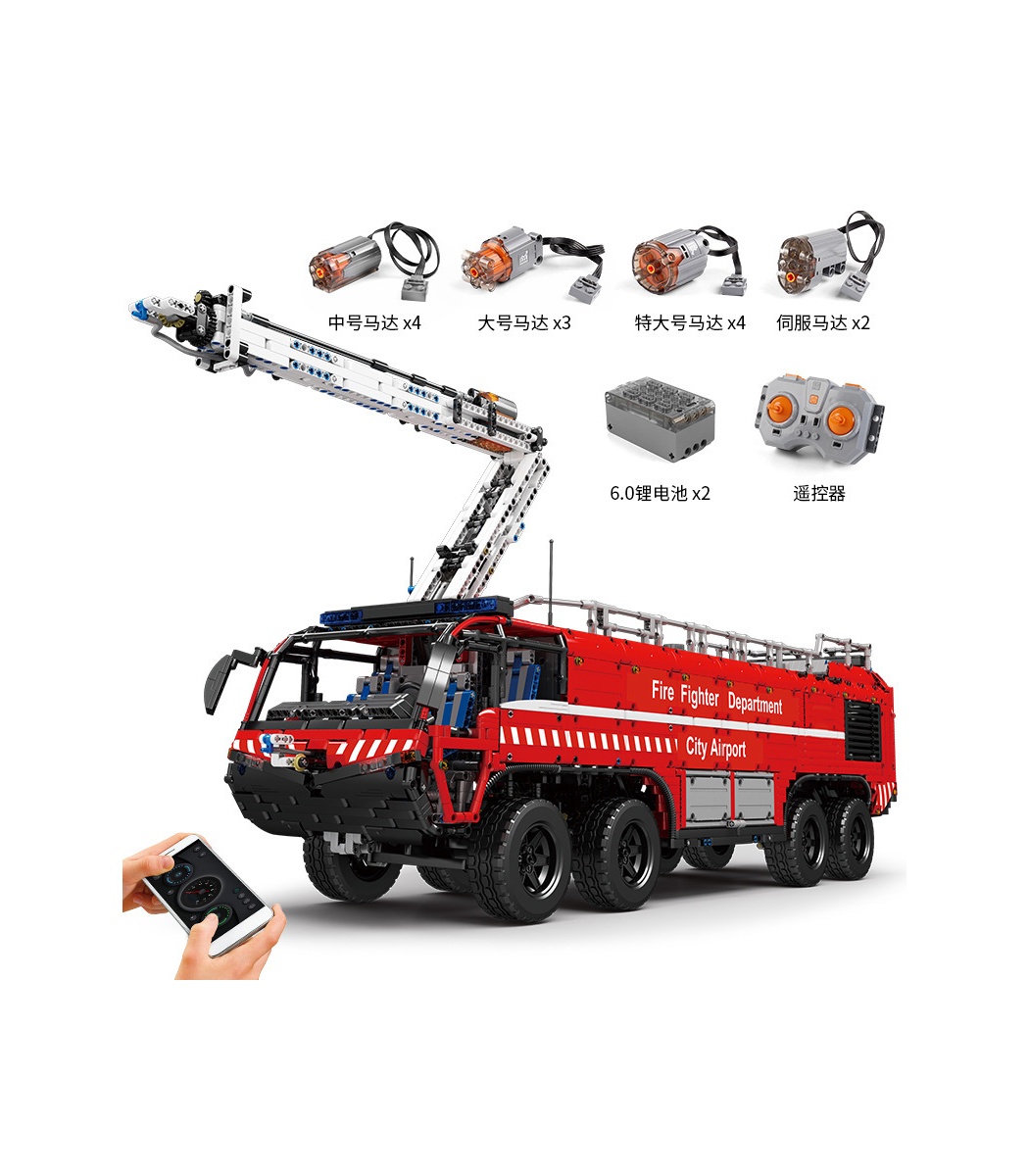 MOLD KING19004空気圧式空港救助車リモートコントロールビルディングブロックおもちゃセット
