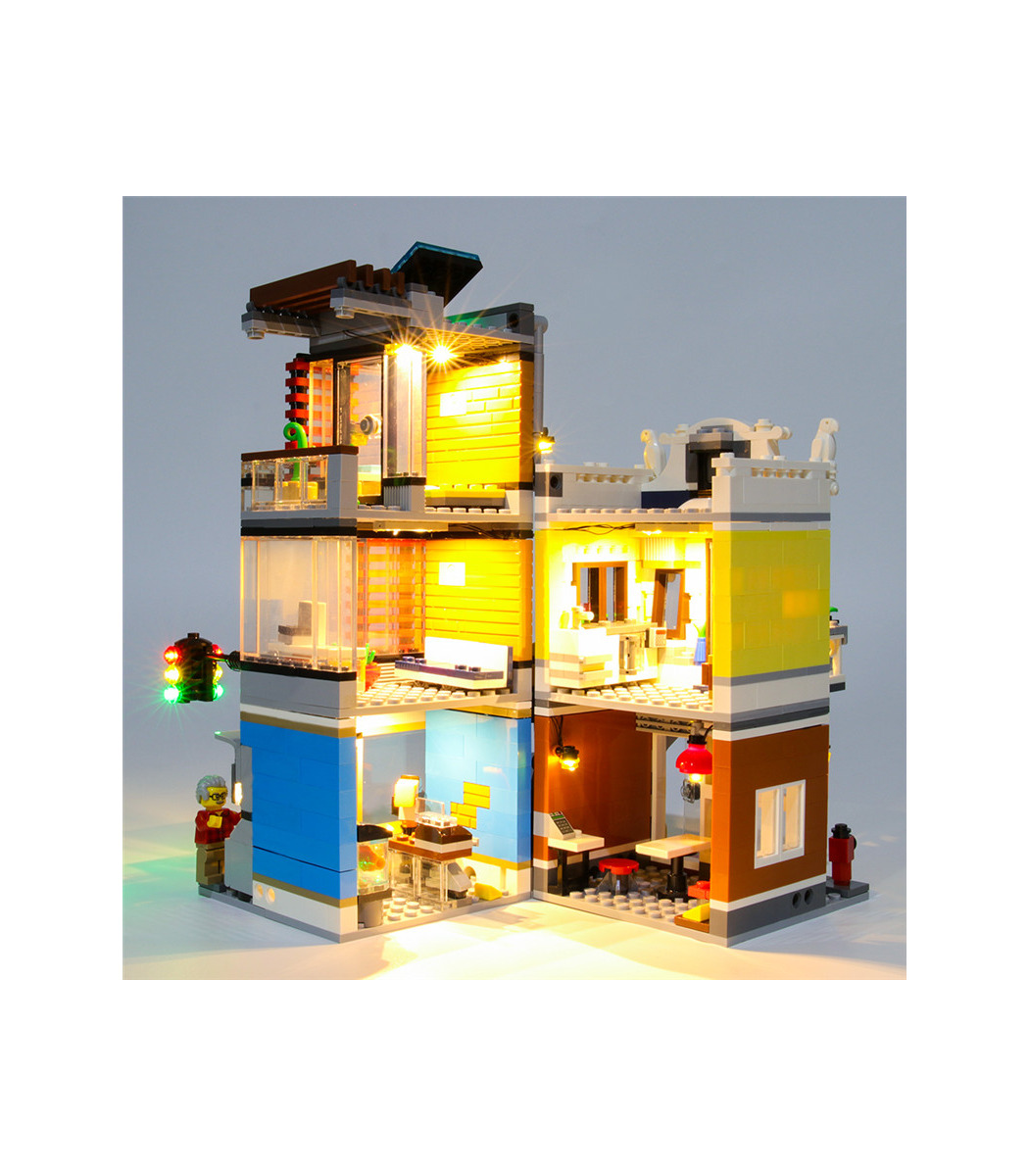 • 라이트 키트 전용. Townhouse Pet Shop & Café 건물 세트는 포함되어 있지 않습니다.