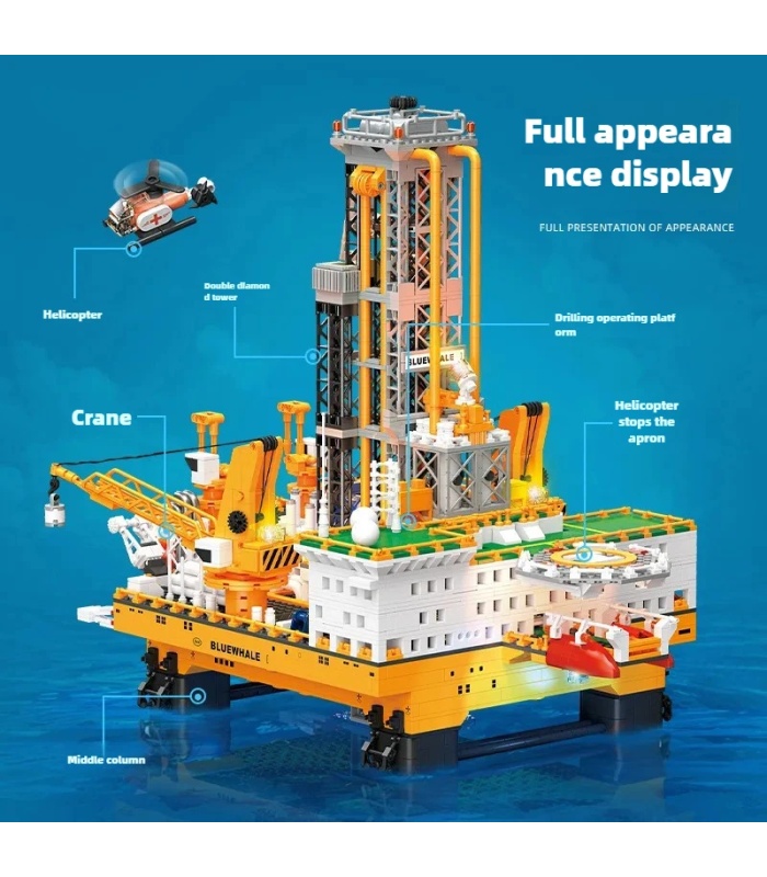 JIE STAR JJ9135 Bluewhale 1 석유 플랫폼 빌딩 세트는 세심한 설계와 제작을 통해 현대식 해상 석유 시설의 놀라운 미니어처 표현을 매니아에게 제공합니다. 이 모델은 실제 해상 석유 플랫폼의 구조적 비율을 반영하도록 정확하게 크기가 조정되었으며, 드릴링 타워, 거주 공간, 생산 시설과 같은 주요 구성 요소가 신중하게 복제되었습니다. 모든 세부 사항은 현실감을 불러일으키도록 설계되어 사용자가 광대한 바다에 푹 빠져서 해상 석유 플랫폼의 복잡한 작업을 가까이서 경험할 수 있습니다. 또한 이 모델은 분리형 헬리콥터 패드와 들어올릴 수 있는 크레인을 포함한 이동식 기계 부품을 갖추고 있습니다.
