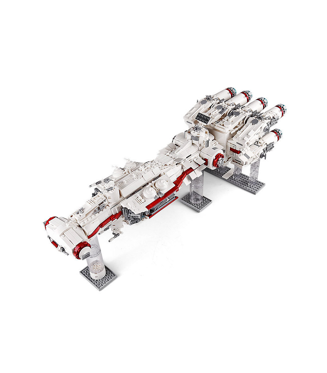 Corellian Corvette 또는 Rebel Blockade Runner로도 알려진 Tantive IV CR90 순양함은 Corellian Engineering Corporation에서 제조한 소형 다기능 전함입니다. 다기능 성간 우주선인 CR90은 정부와 민간 이익 단체에 의해 은하계 전역에서 널리 사용됩니다. CR90의 내부는 모듈식 디자인을 채택하여 Corellian 프리깃을 한 기능에서 다른 기능으로 쉽게 재구성할 수 있습니다. CR70과 같은 일부 구형 프리깃은 Vanguard c20과 같은 수정 키트를 통해 CR90으로 쉽게 업그레이드할 수 있습니다. CR90 순양함의 표준 구성은 2개의 Taim&Bak H9 쌍발 터보차저 레이저와 4개의 단일 터보차저 레이저를 장착하고 있지만 무기 체계가 다릅니다. CR90 경순양함은 최대 8개의 터보 레이저, 6개의 레이저 캐논 및 4개의 이온 캐논을 탑재할 수 있습니다. 그러나 표준 구성에서 이 포탑은 프리깃 엔진 뒤에 있는 어떤 물체도 공격할 수 없습니다. MOLD KING 21003 탄티브 IV CR90 조립 세트는 스타워즈 팬을 위한 훌륭한 세트입니다.
