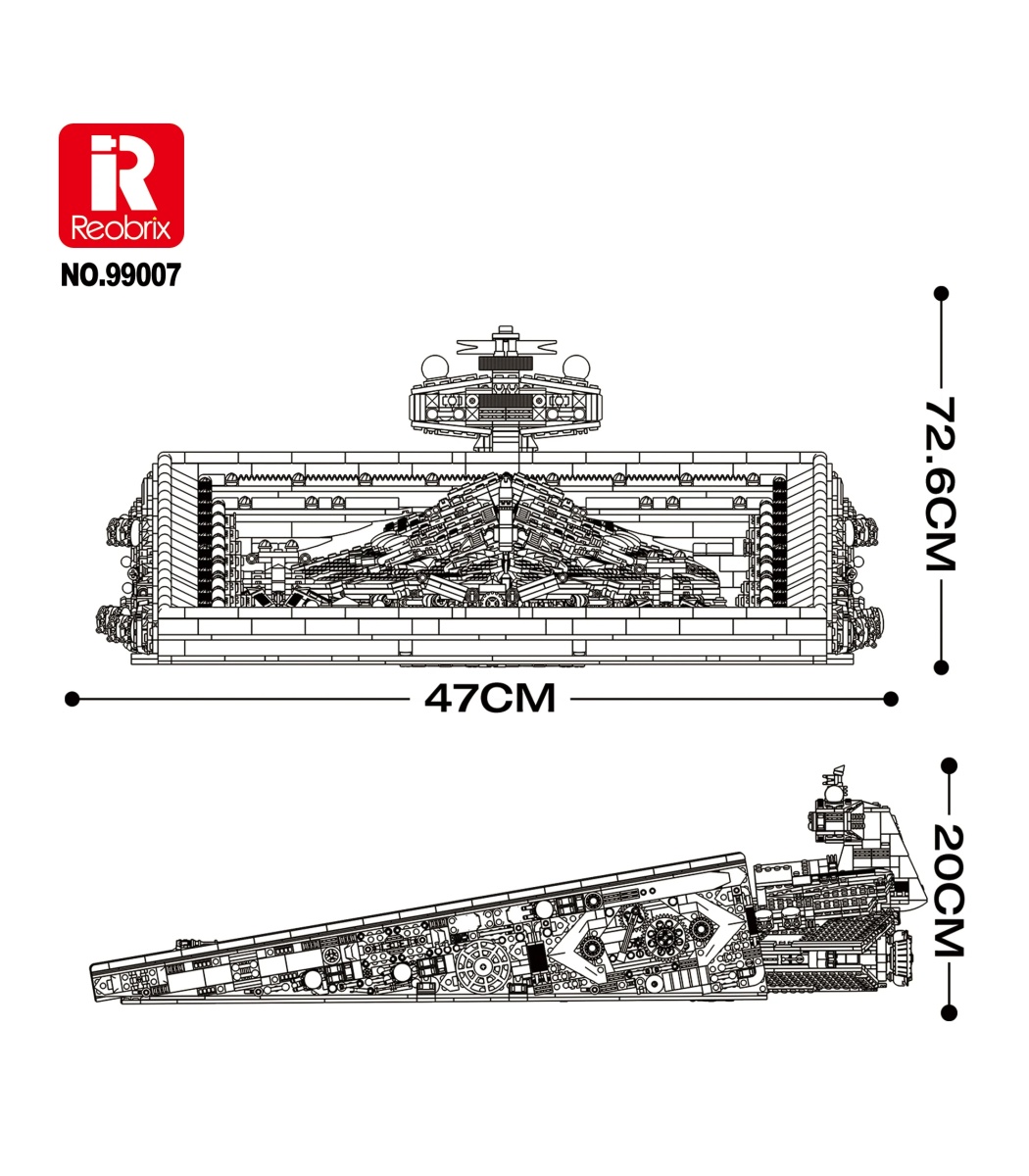 • Reobrix 99007 스타 디스트로이어 리벤지 제품 크기는 높이 약 36cm, 길이 약 43cm, 너비 약 28cm입니다.