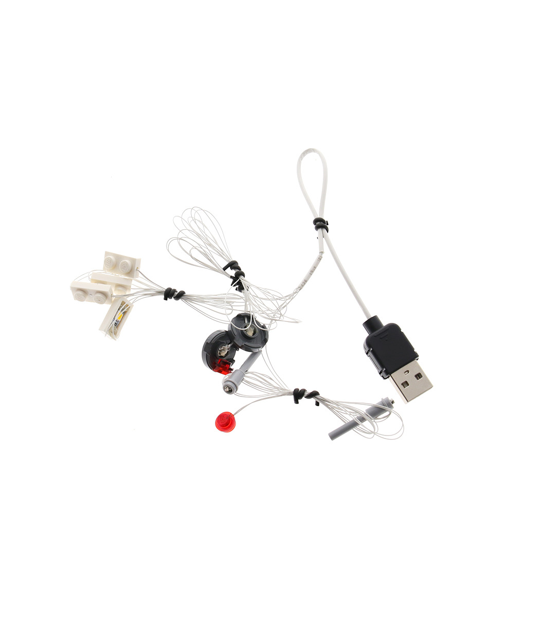 • 이 맞춤형 LED 조명 키트는 저전압이며 USB 플러그를 사용하여 Star Wars Y-Wing Starfighter 세트를 켭니다.